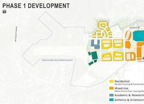 Construction on phase one would begin in 2027 under UNC Chancellor Roberts’ proposed timeline. Phase one would include undergraduate housing for more than 2,000, academic research buildings, a hotel and retail spaces.